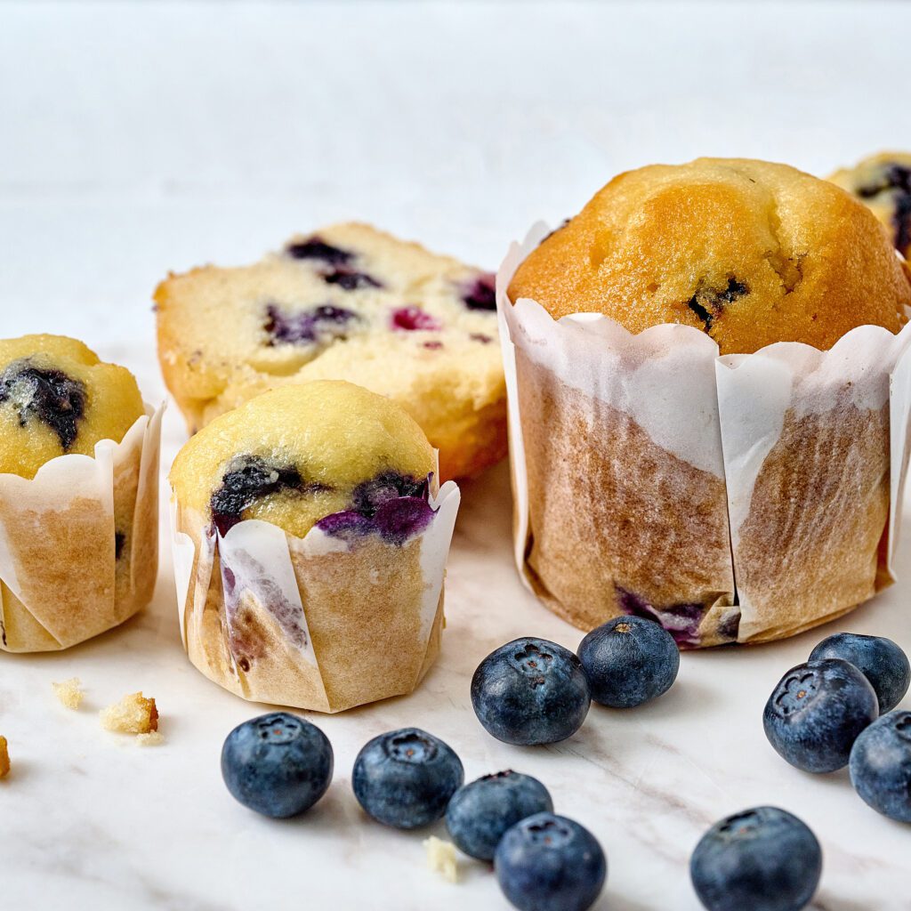 Sugar, Wheat Flour (Thiamine), Egg or Reconstituted Egg, Blueberries (12%), Canola Oil, Water, Apple Puree, Invert Sugar, Whey Powder (Milk), Thickener (1412), Emulsifiers (Vegetable – 477, 471, 475), Raising Agents (450, Sodium Bicarbonate) (Wheat), Salt, Preservative (Potassium Sorbate), Natural Flavour, Vegetable Gum [Xanthan (Soy)].